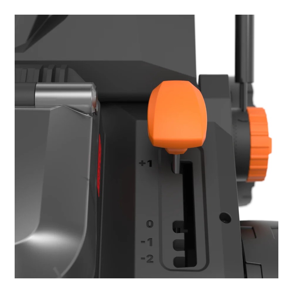 El diseño incorpora un fondo curvado que reduce la resistencia, facilitando el desplazamiento respecto a otros modelos del mercado. La máquina dispone de 4 posiciones de altura ajustables mediante una palanca, adaptándose a las diferentes necesidades de tu césped. Además, la bolsa de recogida de 40 L permite trabajar durante más tiempo sin interrupciones.