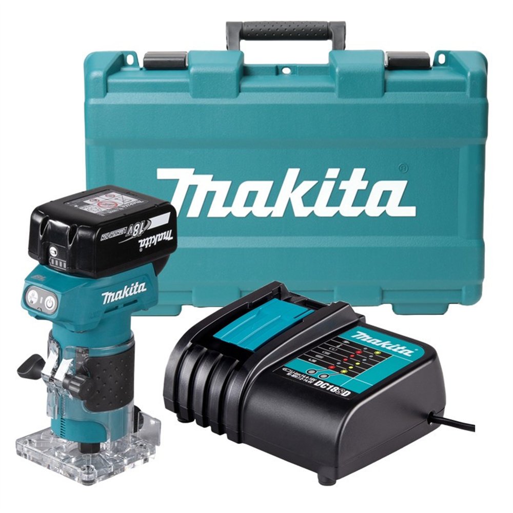 La Makita DRT52SF es una fresadora a batería de 18V diseñada para trabajos de carpintería, perfilado, rebajado y acabados con un manejo cómodo y preciso. Gracias a su motor sin escobillas, su diseño ligero y su velocidad constante de 30.000 RPM, resulta una opción muy práctica para profesionales que buscan una máquina compacta y eficiente para remates, cantos y trabajos de detalle en madera. Esta versión SF se suministra con batería de 3,0 Ah, cargador y maletín PVC.
