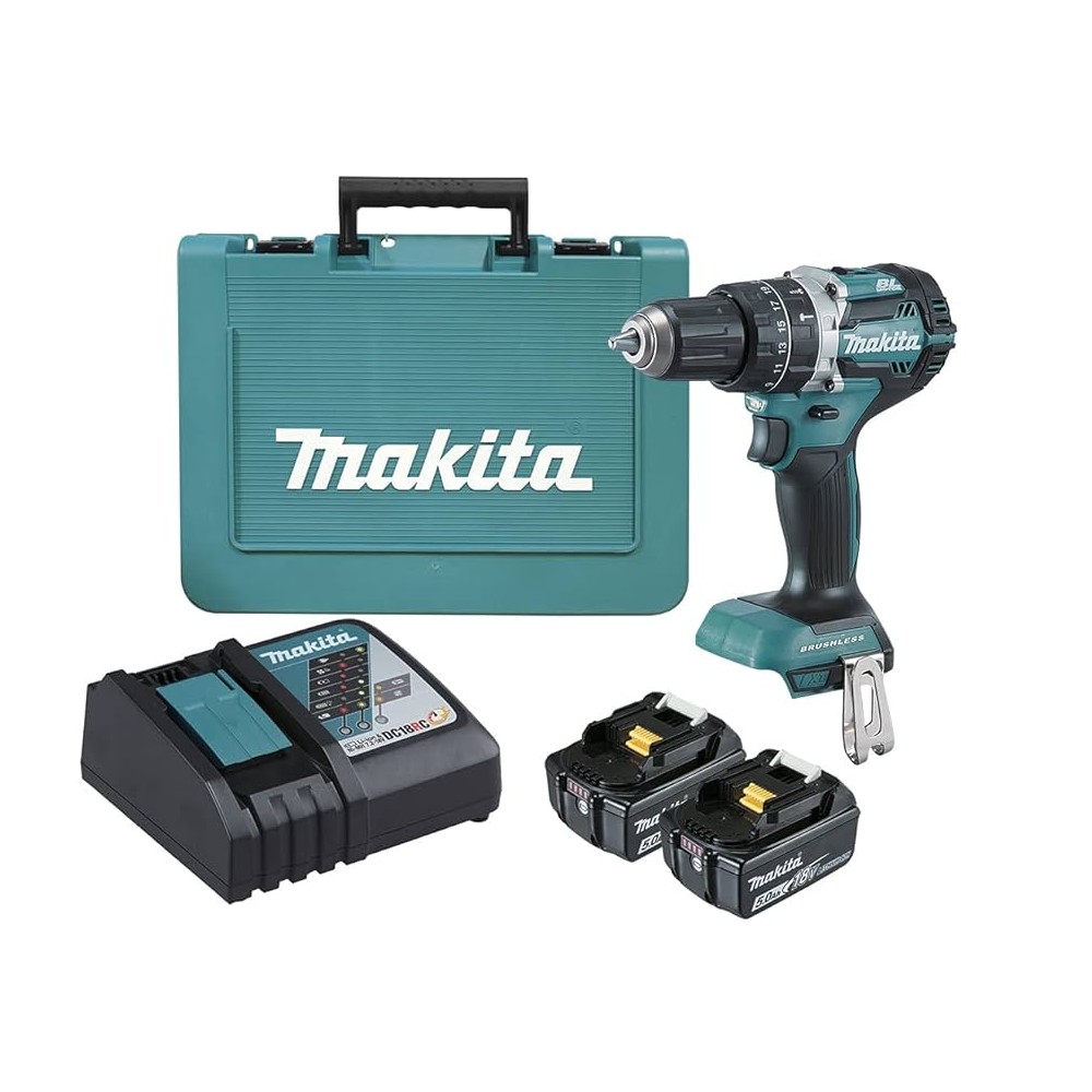 Taladro percutor a batería Makita DHP484RTE | 18V LXT | Brushless | 0–2.000 RPM | 30.000 IPM | 2x5,0Ah + cargador + maletín