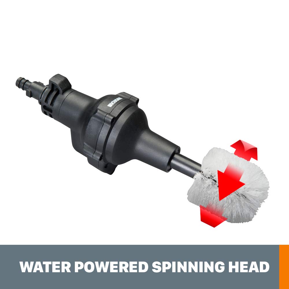 El Worx WA4042 es un cepillo de limpieza rotativo para el sistema Hydroshot, diseñado para ayudarte a limpiar con precisión en espacios reducidos y sobre superficies que requieren un contacto más suave. El cabezal gira con la presión del agua y permite frotar de forma continua mientras el agua circula, facilitando una limpieza más profunda en zonas complicadas como llantas y rincones.