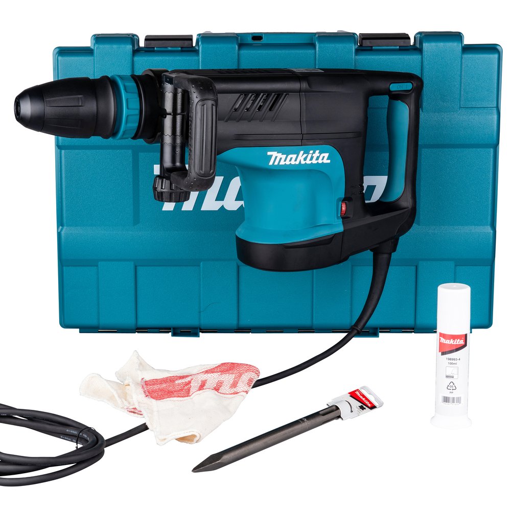 - Martillo demoledor SDS-MAX con motor de 1.510 W para trabajos pesados de demolición y cincelado.