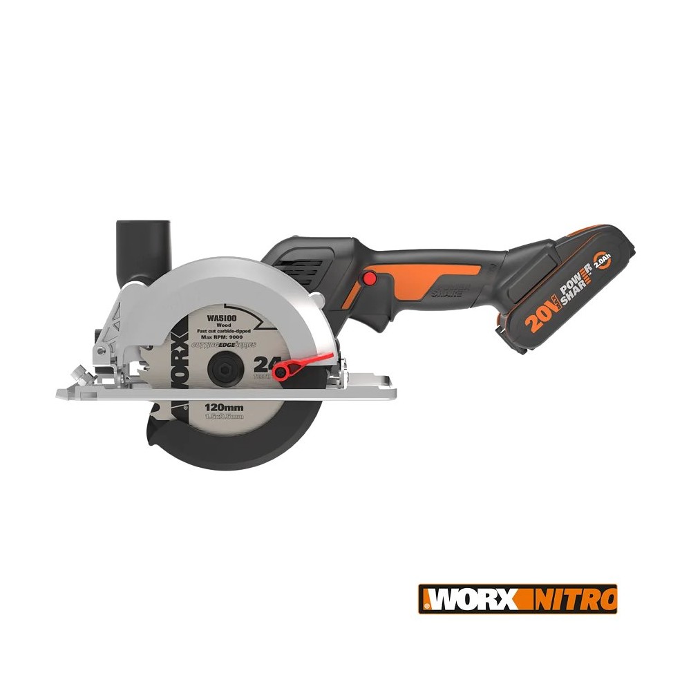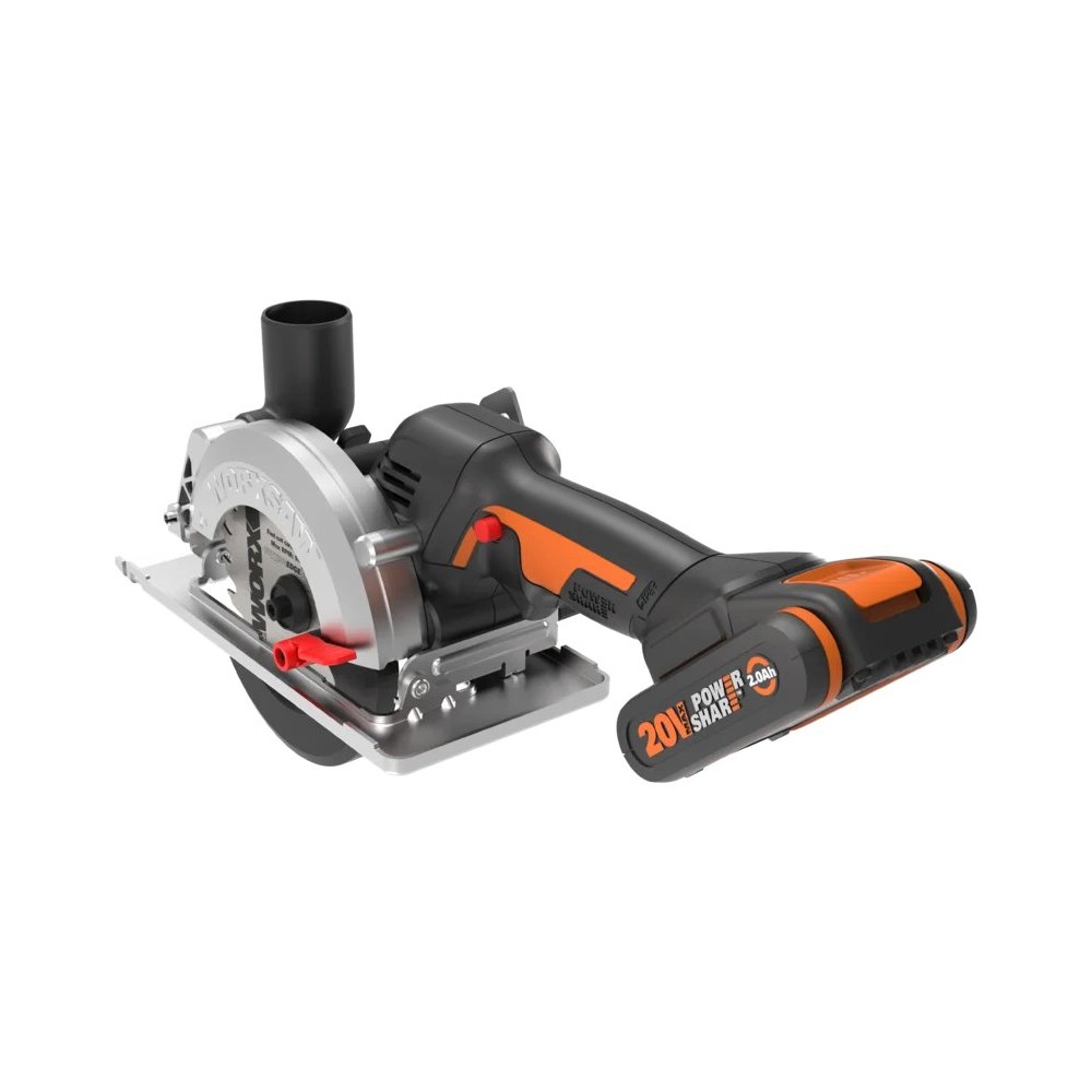 Sierra Circular 20V Worx WorxSaw WX531 | Disco 120 mm | Corte 41 mm | Brushless | 1x2,0Ah + Cargador + Maletín