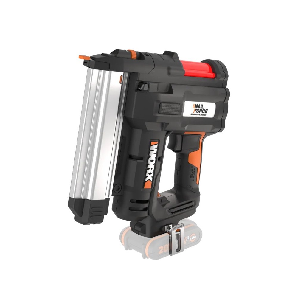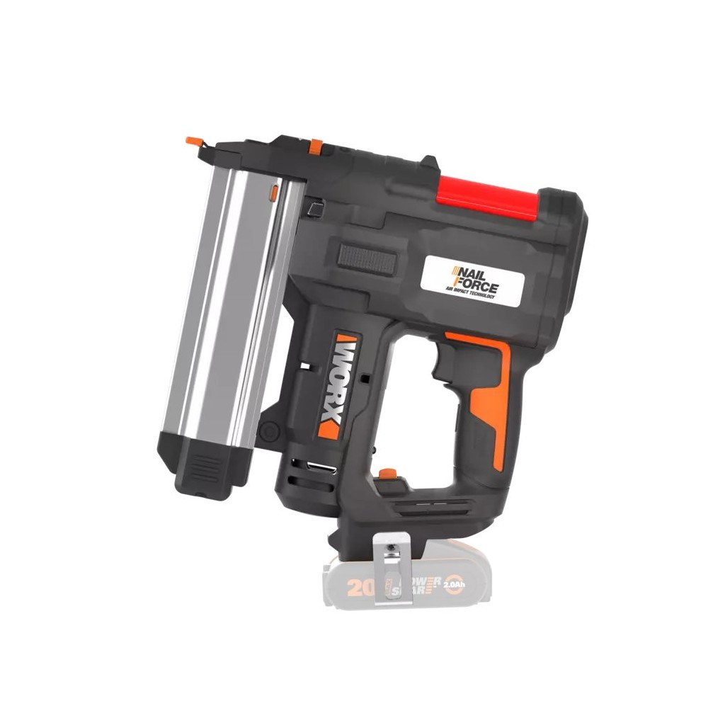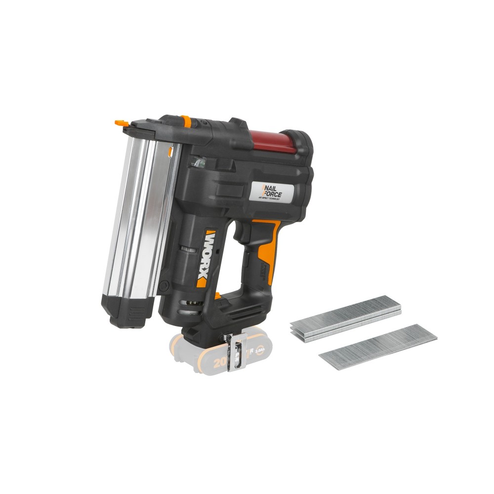La Worx WX840.9 est l'outil indispensable pour vos projets de bricolage, combinant les fonctions d'agrafeuse et de cloueuse dans un design efficace et facile à utiliser. Son réglage de profondeur protège les surfaces de travail, et tire des clous de jusqu'à 50 mm et des agrafes de 40 mm de long à une vitesse allant jusqu'à 80 unités par minute. De plus, elle dispose d'un chargeur d'agrafes à libération facile et d'un indicateur de faible niveau de clous, assurant un travail ininterrompu. La plateforme Powershare permet d'utiliser la même batterie avec d'autres outils de 20V de Worx, bien qu'elle n'inclue pas de batterie ni de chargeur.