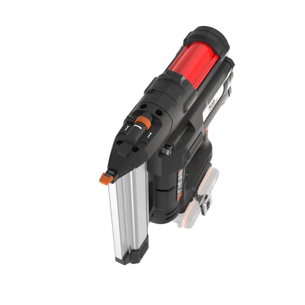 Worx WX840.9 est une agrafeuse à batterie qui combine deux fonctions : agrafeuse et cloueuse, permettant un réglage de profondeur pour protéger la surface de travail. Cet appareil est idéal pour ceux qui recherchent efficacité et confort lors de l'exécution de tâches de fixation.