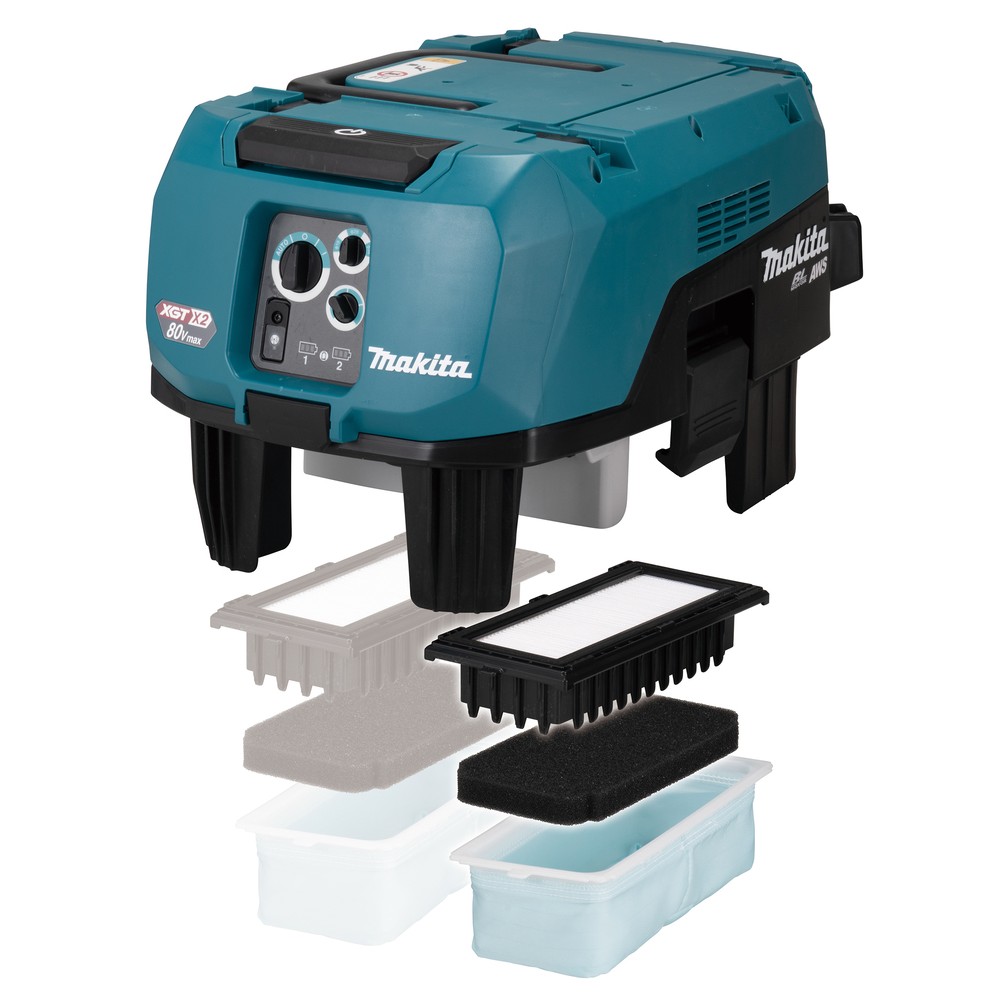VC006GM fonctionne avec deux batteries XGT de 40Vmáx (80Vmáx), permettant un débit d'air élevé similaire à celui des modèles avec câble, et est particulièrement efficace dans les applications où une grande quantité de poussière en suspension est générée.