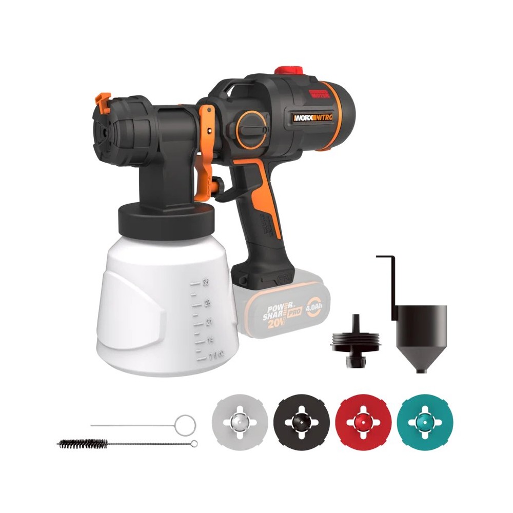 Pulvérisateur de peinture sans fil Worx - 20KPa | PowerShare | WX020.9 | Sans batterie ni chargeur | Buses pour différents matér
