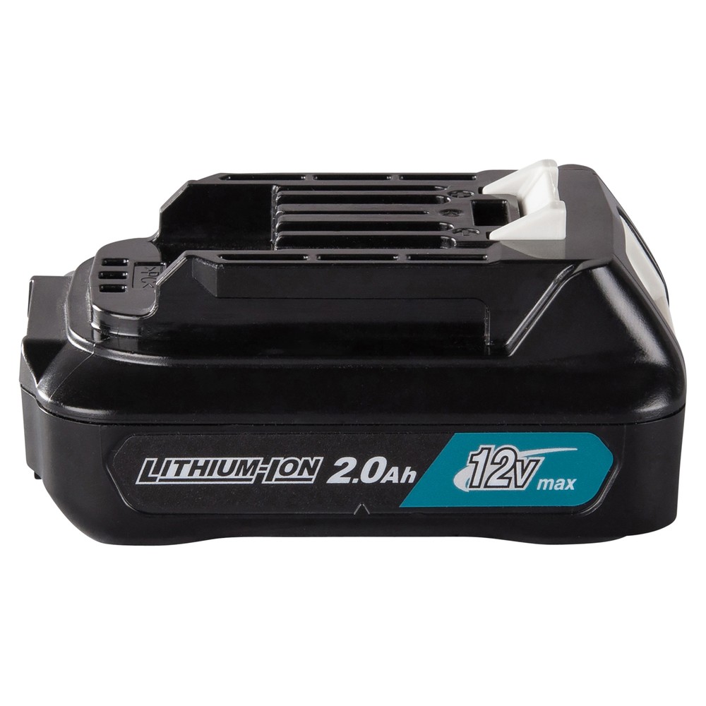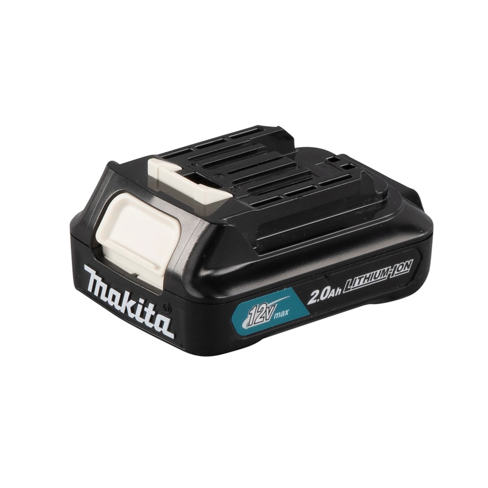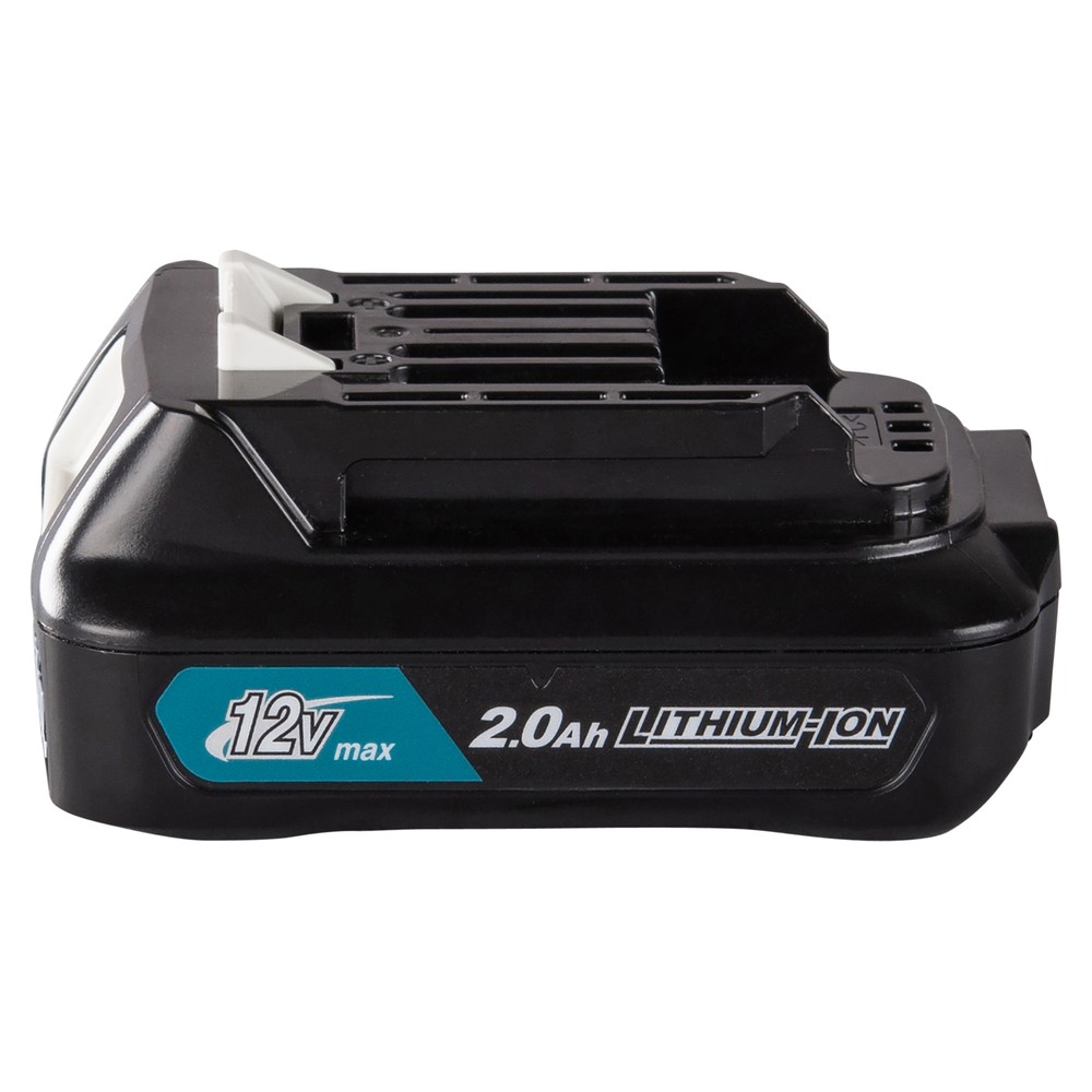 Batterie lithium-ion de 2,0 Ah, compacte et légère, avec indicateur de niveau de charge. Adaptée pour les outils Makita de 12V max avec batterie CXT®. La batterie est légère et de taille très compacte. Le temps de charge est d'environ 30 minutes avec un chargeur rapide.