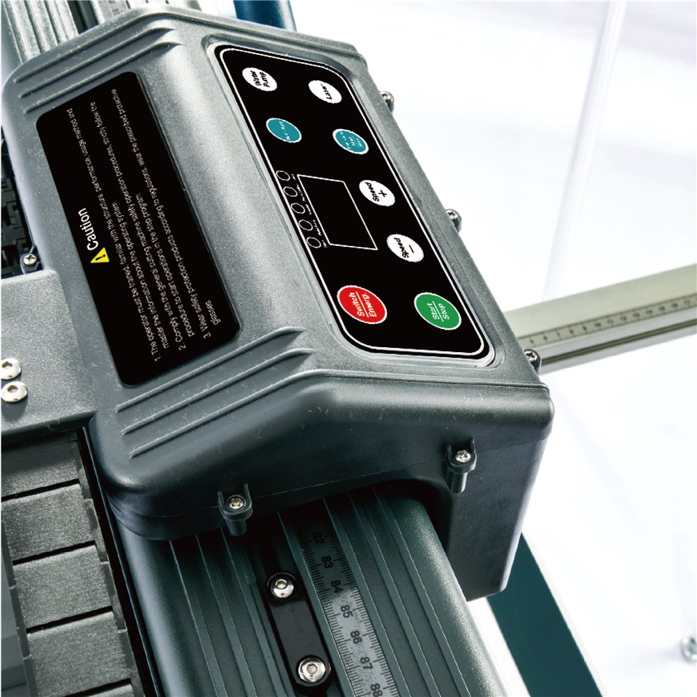 - Scie électrique automatique pour carrelage pour coupes droites, diagonales, coupes d’onglet à 45° et bords arrondis.