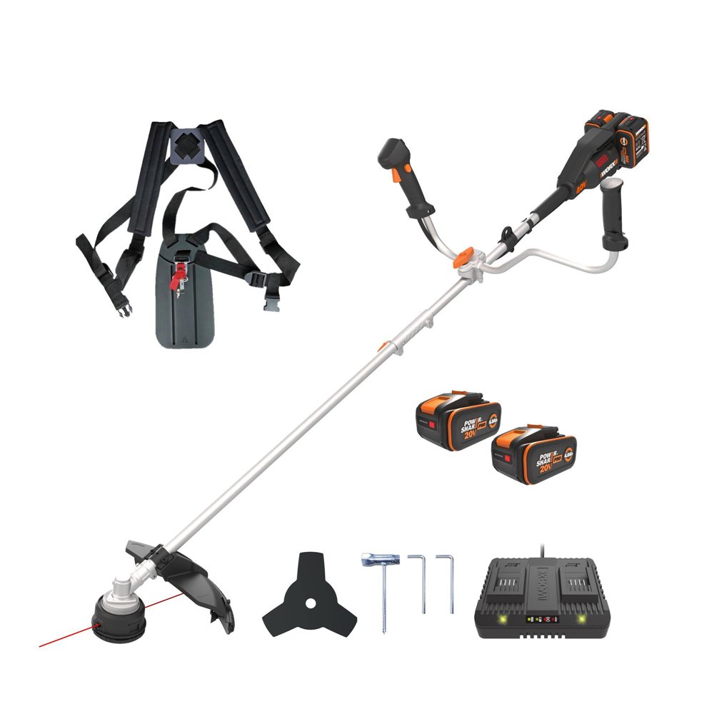 POTENCE ET CONTRÔLE SANS CÂBLES: La WORX WG084E est une débroussailleuse 40V (2x20V) avec moteur sans balais qui combine haute performance et autonomie. Son système de coupe dual permet d'alterner entre tête de fil pour gazon et lame à 3 dents pour broussailles.