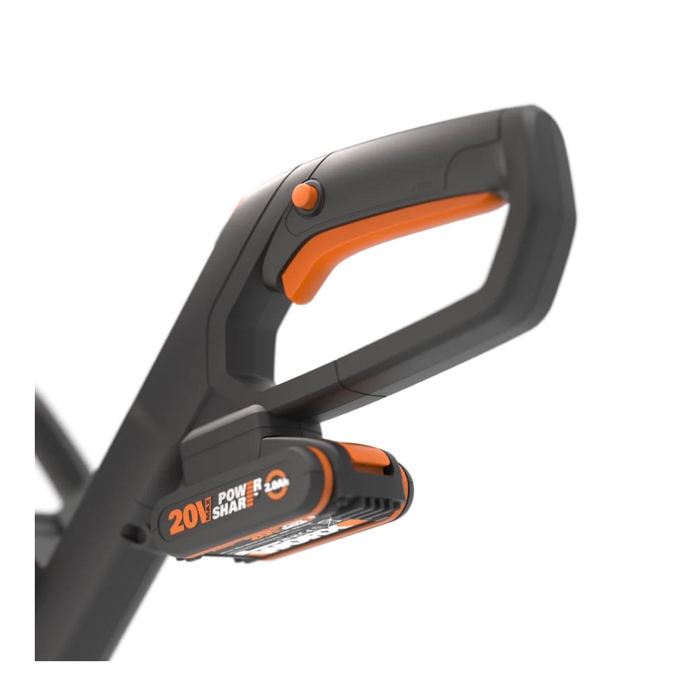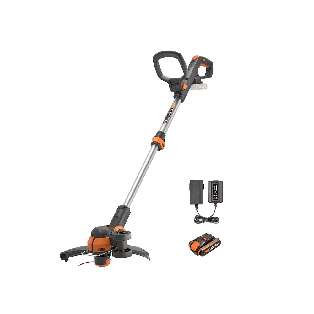 Worx WG163E – Coupe-bordures et profilage 20V Max. PowerShare, avec une coupe de 30 cm. Inclut 2 batteries de 2,0 Ah et chargeur. Dispose d'un système Command Feed pour l'alimentation automatique du fil, d'une tête inclinable à 9° et de roues en caoutchouc.