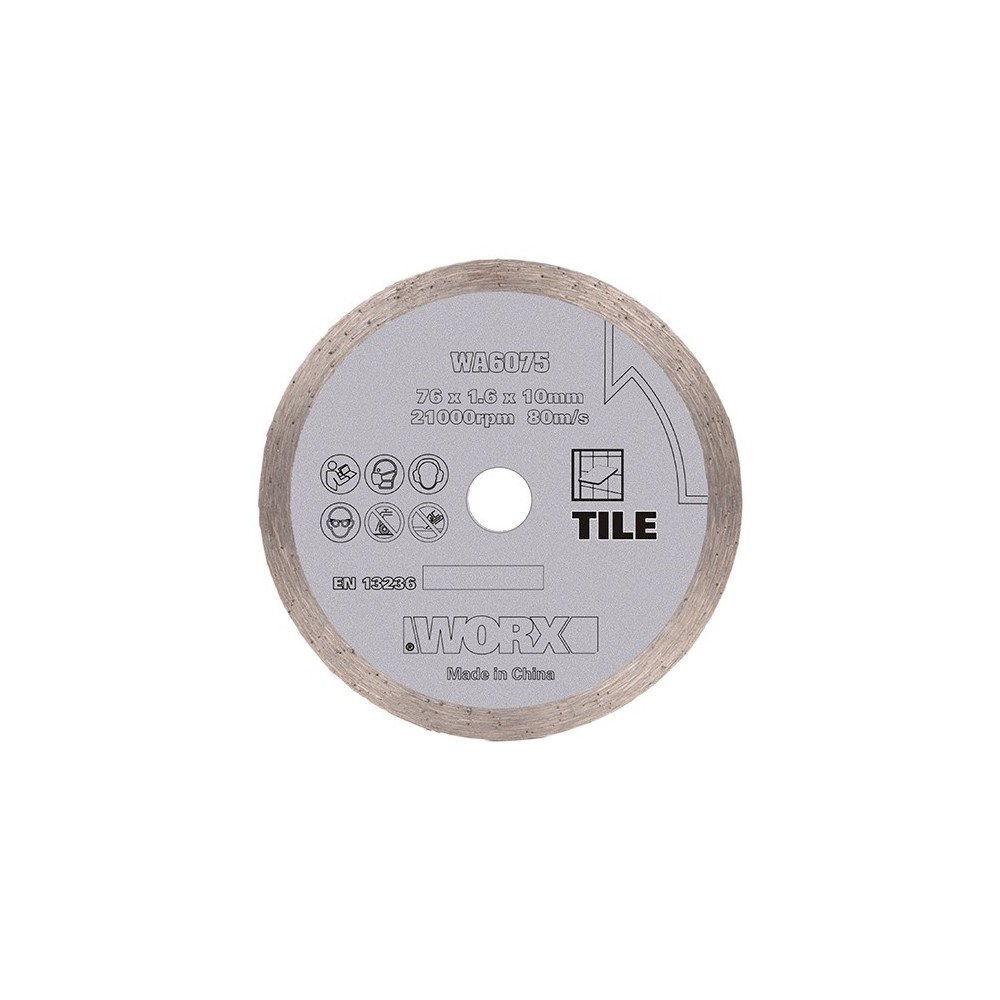 WA6075 | Worx | Disque diamant pour mini meuleuse WX801 (76 mm) | 21.000 tr/min | Bande continue | Idéal pour carrelage