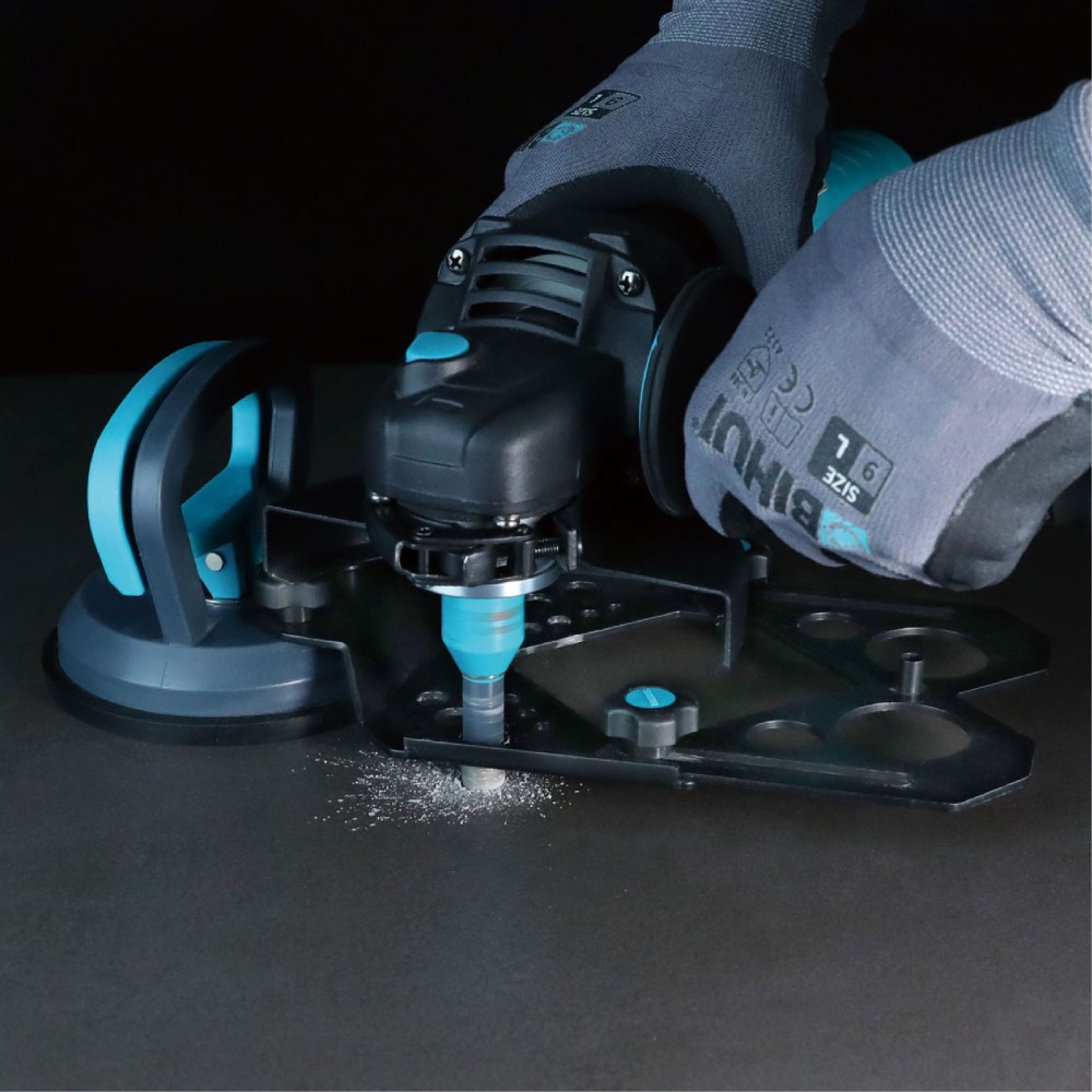 Le BIHUI DBGM est un guide pour centrer les forets à couronne diamant avec ventouse de 125 mm pour maintenir fermement pendant le perçage connexion d'eau pour le perçage à humide. Il apporte précision sur carrelage et pierre avec une plage de 4–115 mm.