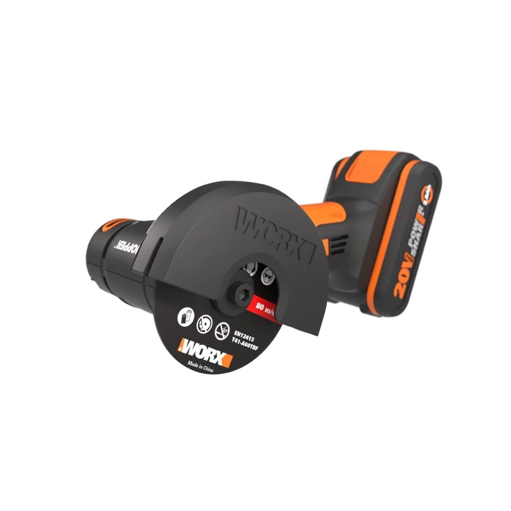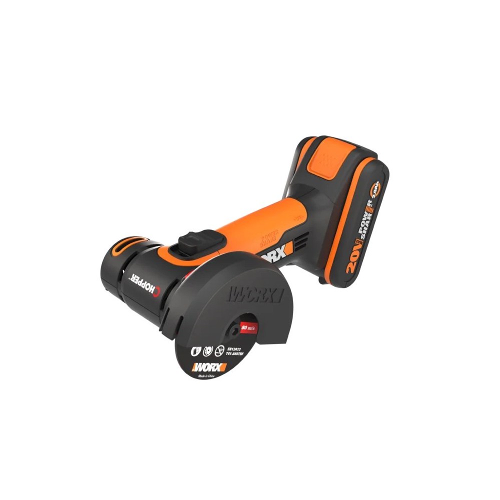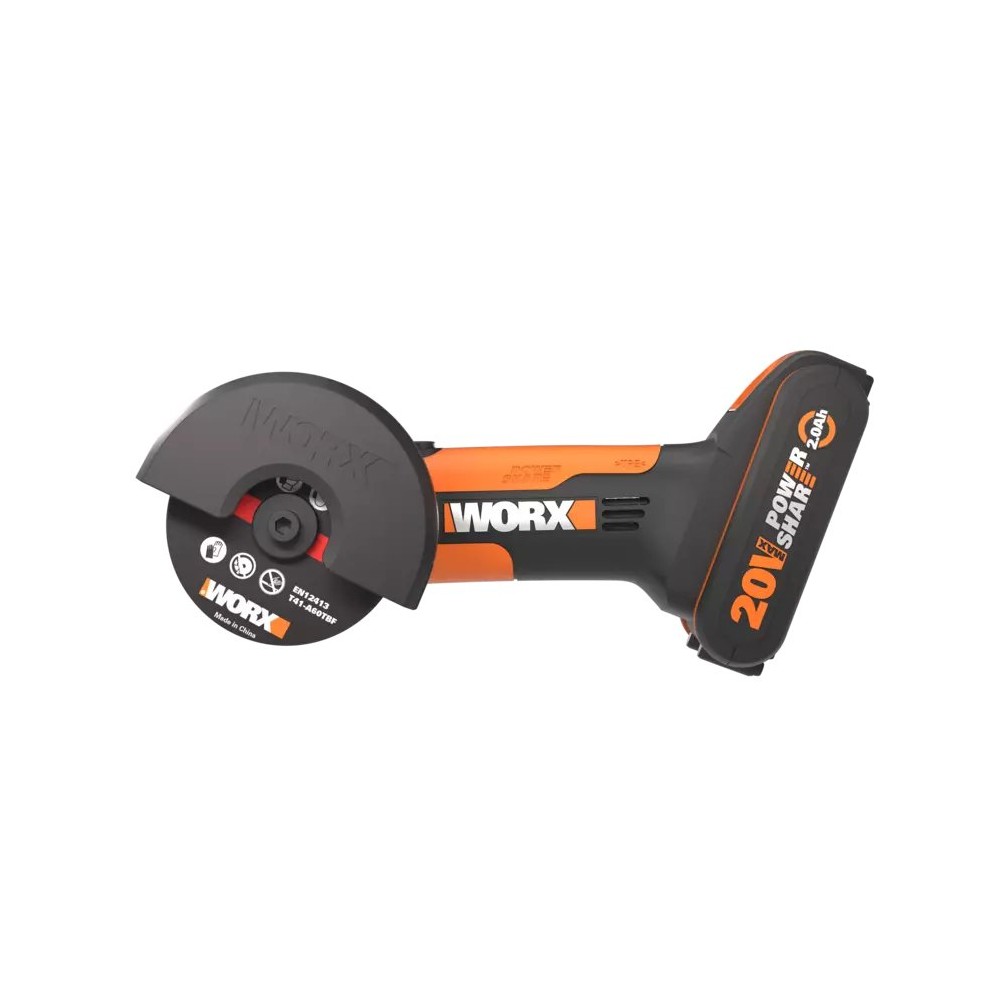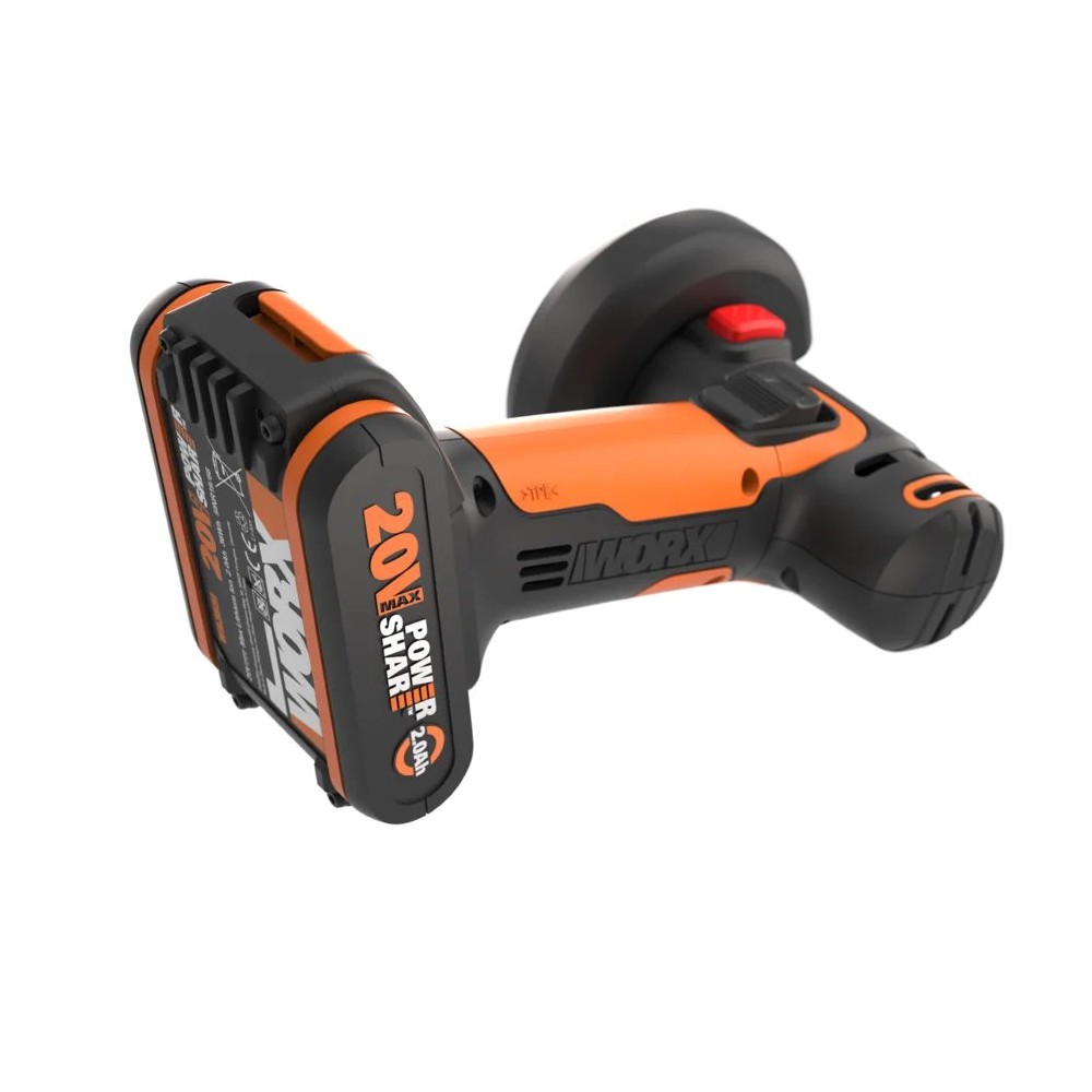 Meuleuse angulaire compacte sans-fil Worx WX801 - 76mm - PowerShare 20V - Inclut 1 batterie 2Ah, chargeur, protection ajustable