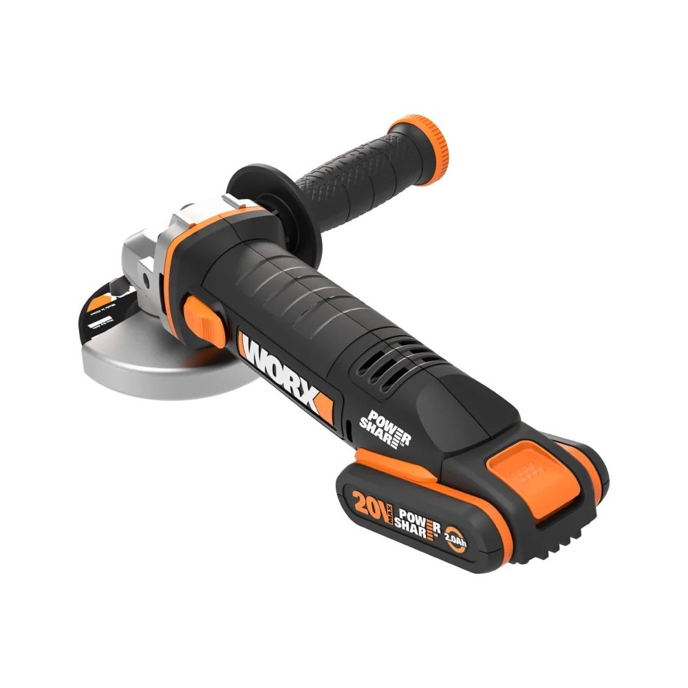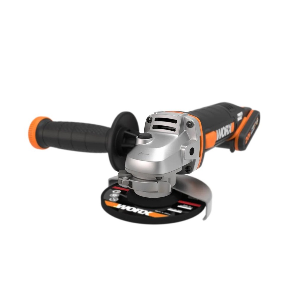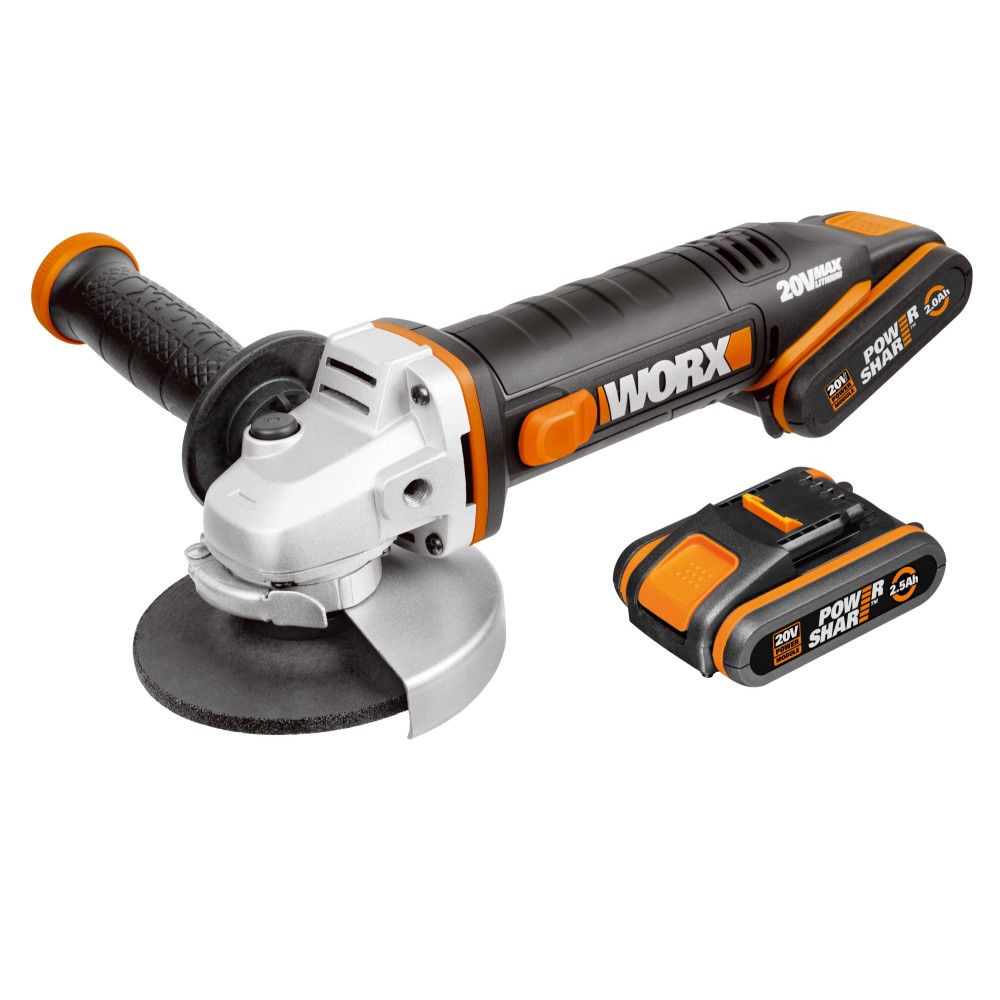 - Inclus : 2 batteries 20V 2,0Ah et chargeur WA3860 (disque métal + protège-meule pour le meulage).