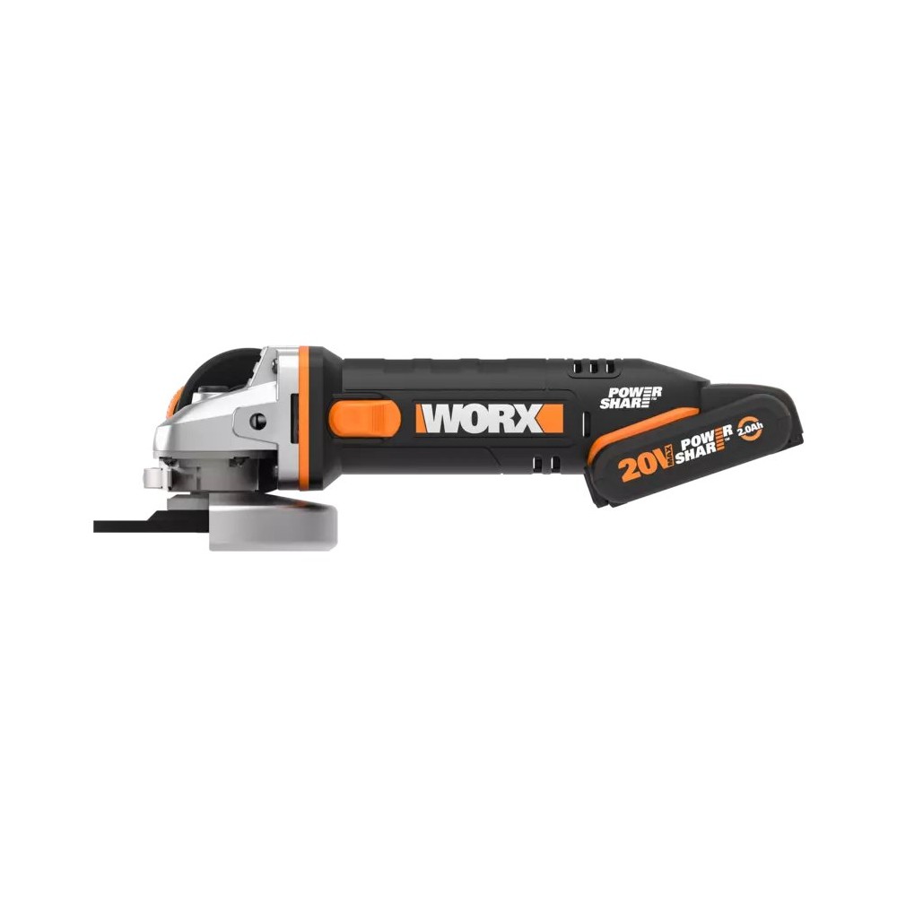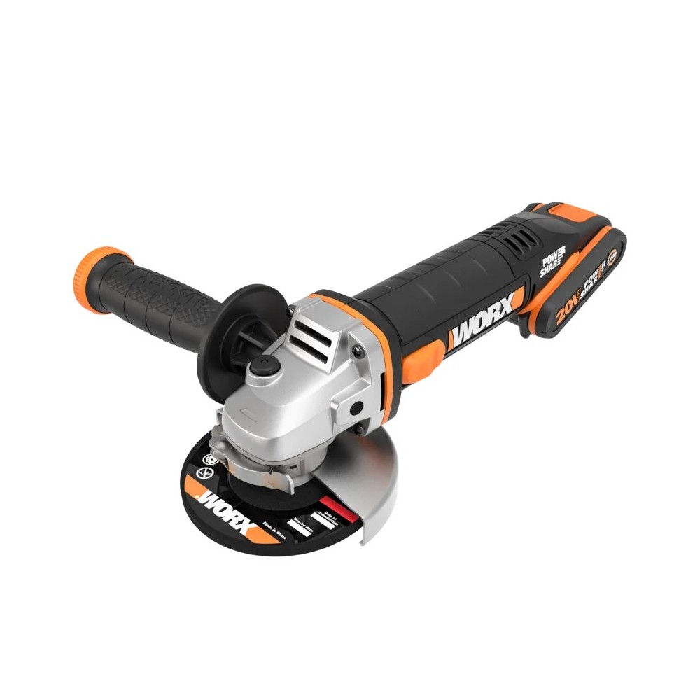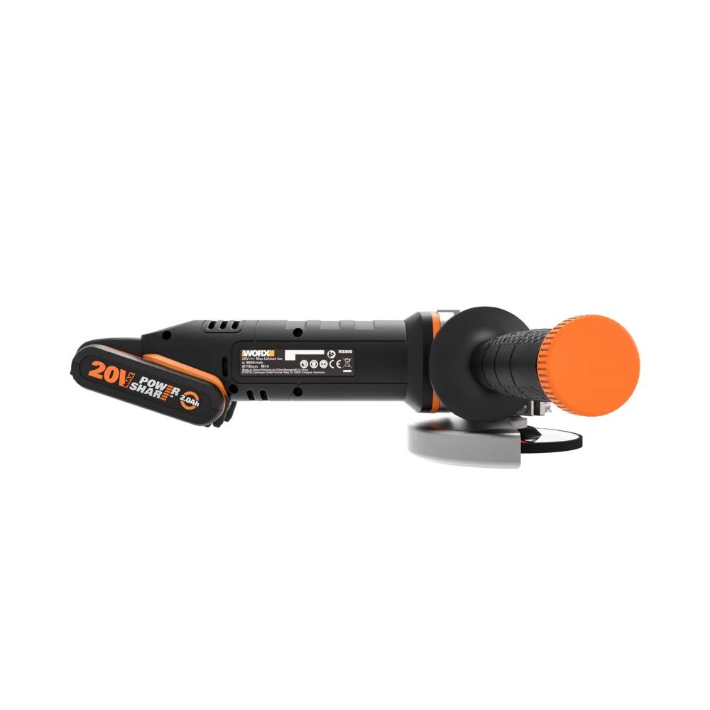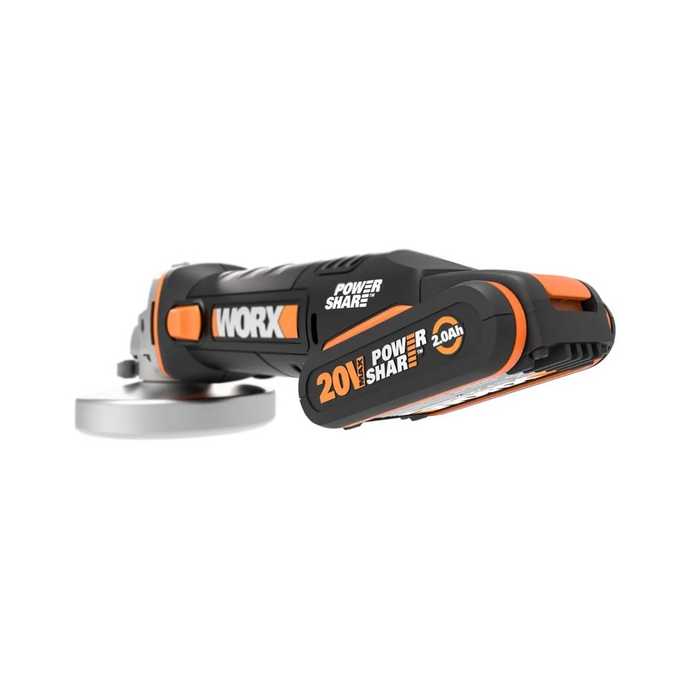 - Inclus : 2 batteries 20V 2,0Ah et chargeur WA3860 (disque métal + protège-meule pour le meulage).