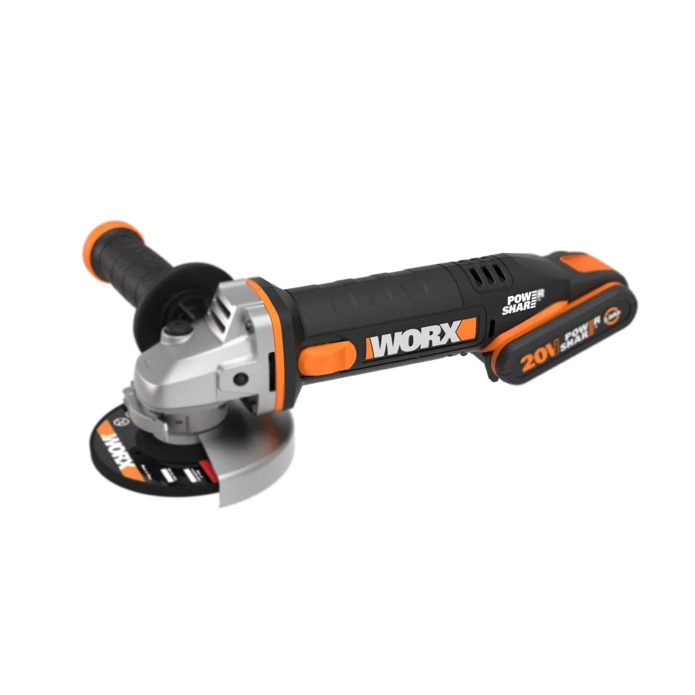 La Worx WX800 est une meuleuse d’angle à batterie 20V PowerShare avec disque 115 mm, conçue pour meuler, couper et poncer des matériaux comme le métal, le carrelage, le béton ou le plastique.