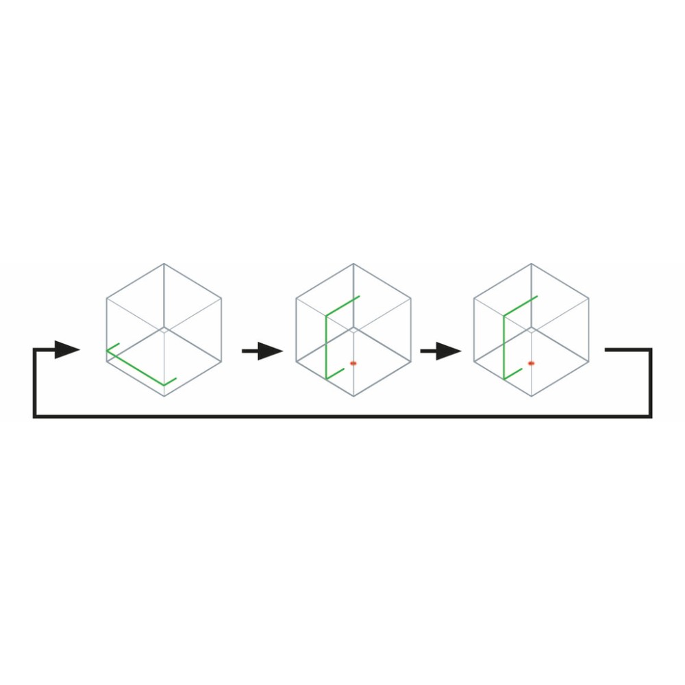 Laser de ligne croisée autonivelant avec une ligne verte verticale et une autre horizontale qui peuvent être utilisées séparément ou ensemble. Visibilité de 10 mètres. Toutes les fonctions sont faciles à manipuler depuis un seul bouton. Le laser est résistant à la poussière et à l'eau avec une classification IP54. Sans batterie, sans chargeur dans l'équipement de base.