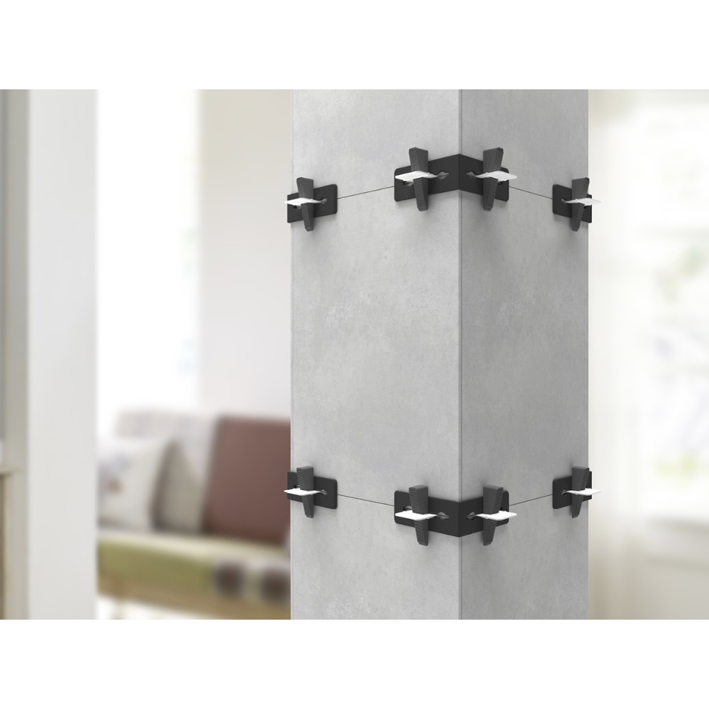 L’Équerre de nivellement Peygran aide à maintenir des rencontres à 90° dans les coins, recoins et marches, optimisant l’alignement pendant la pose.