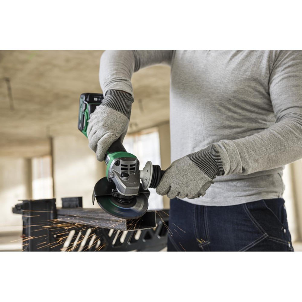 Son design compact et ergonomique facilite sa manipulation, même lors de travaux prolongés, avec une circonférence de prise de seulement 146mm. La meuleuse est équipée d'un système de protection contre le rebond qui s'active lorsqu'une diminution abrupte de la vitesse du moteur est détectée, l'arrêtant rapidement pour réduire le risque d'accidents. De plus, elle dispose d'une fonction de démarrage progressif pour éviter les forces de réaction au démarrage, offrant un plus grand confort à l'utilisateur.