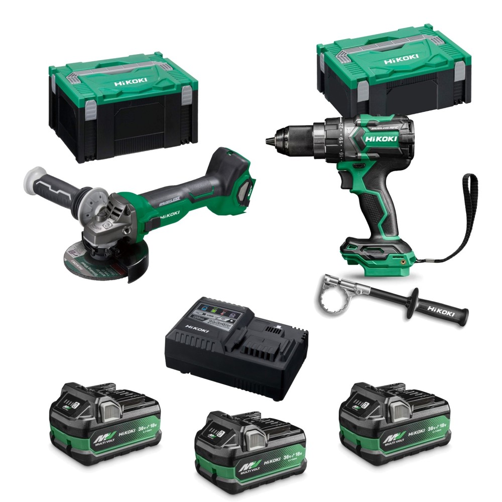 Pack Hikoki 18 V - Perceuse à percussion + Meuleuse + 3 Batteries et Chargeur
