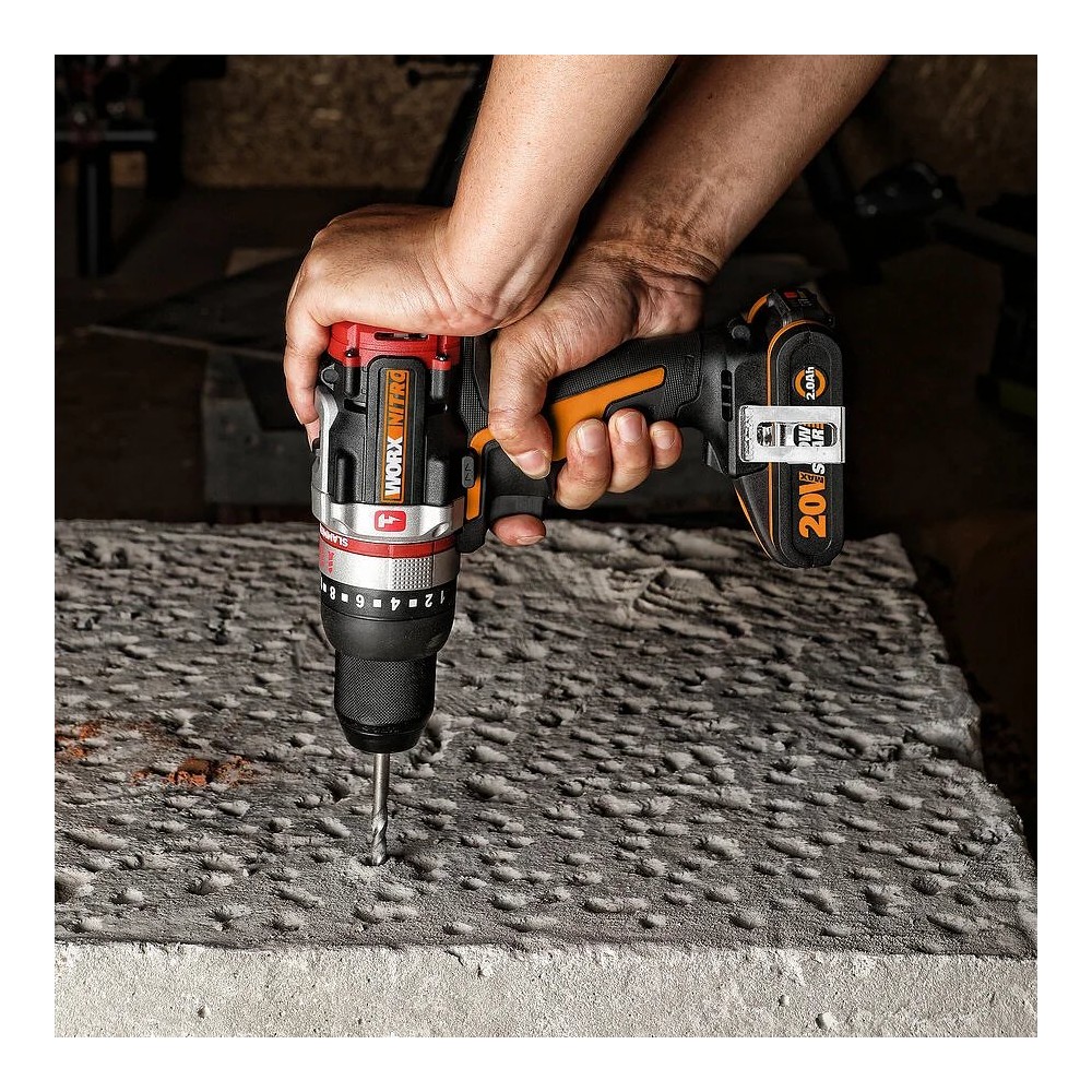 Perceuse à percussion Slammer Brushless 20V Worx WX354 | 2 batteries 2Ah et chargeur - Moteur sans balais