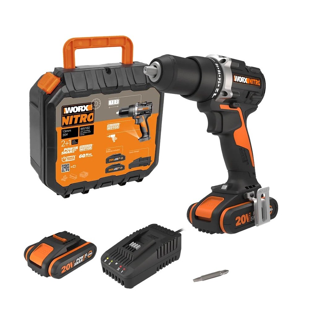 Perceuse Visseuse Brushless 20V Worx WX102 - 2 batteries 2Ah, chargeur et Coffret | moteur sans balais