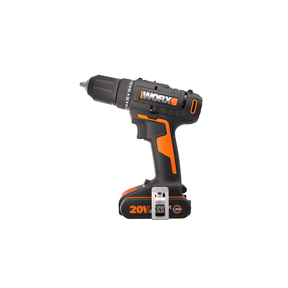 Perceuse Visseuse 20V Max. Worx | PowerShare | WX108 léger | 2 batteries 2Ah, chargeur et Coffret | Mandrin 13mm, 45Nm | Lumière
