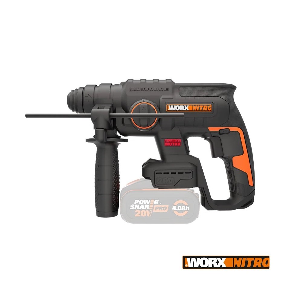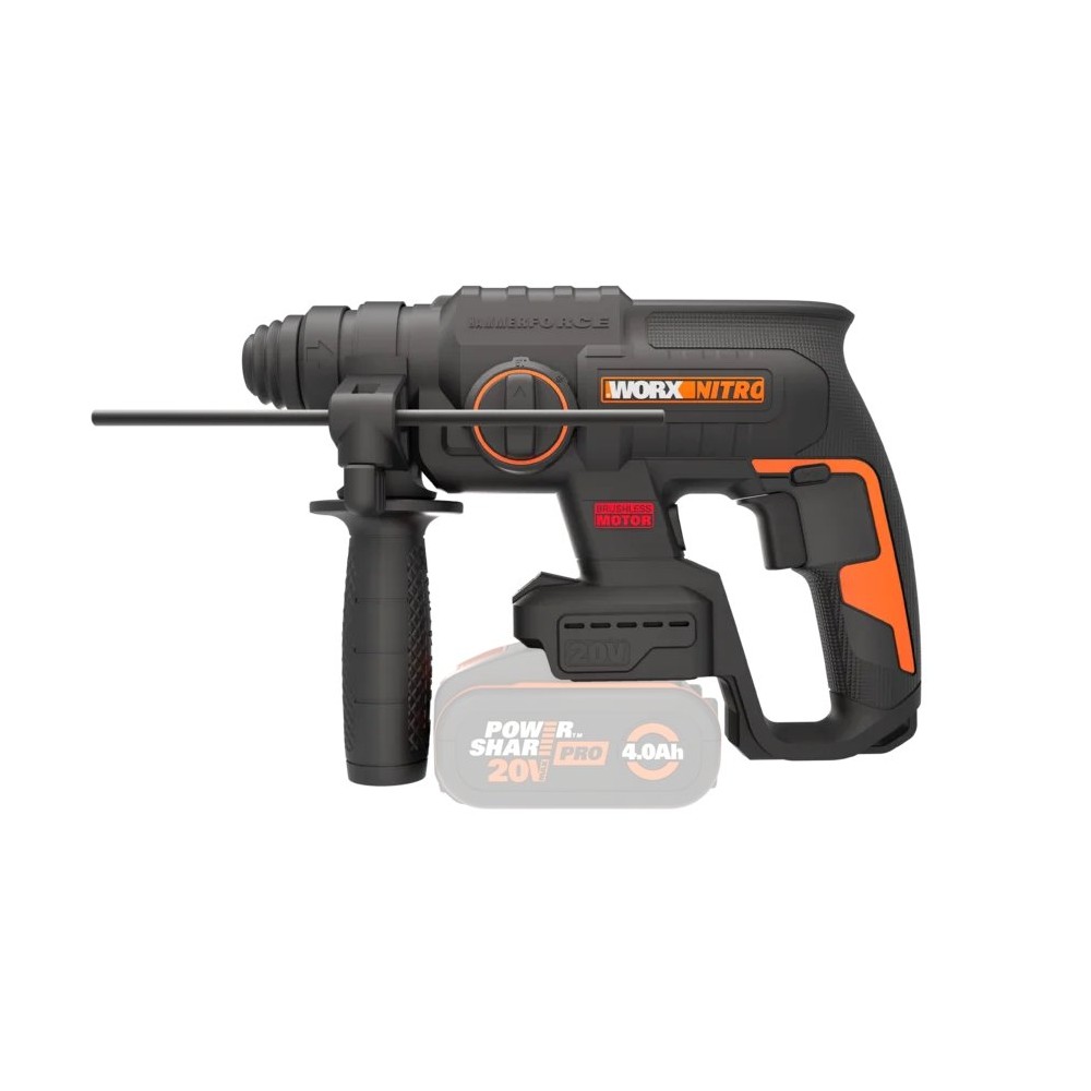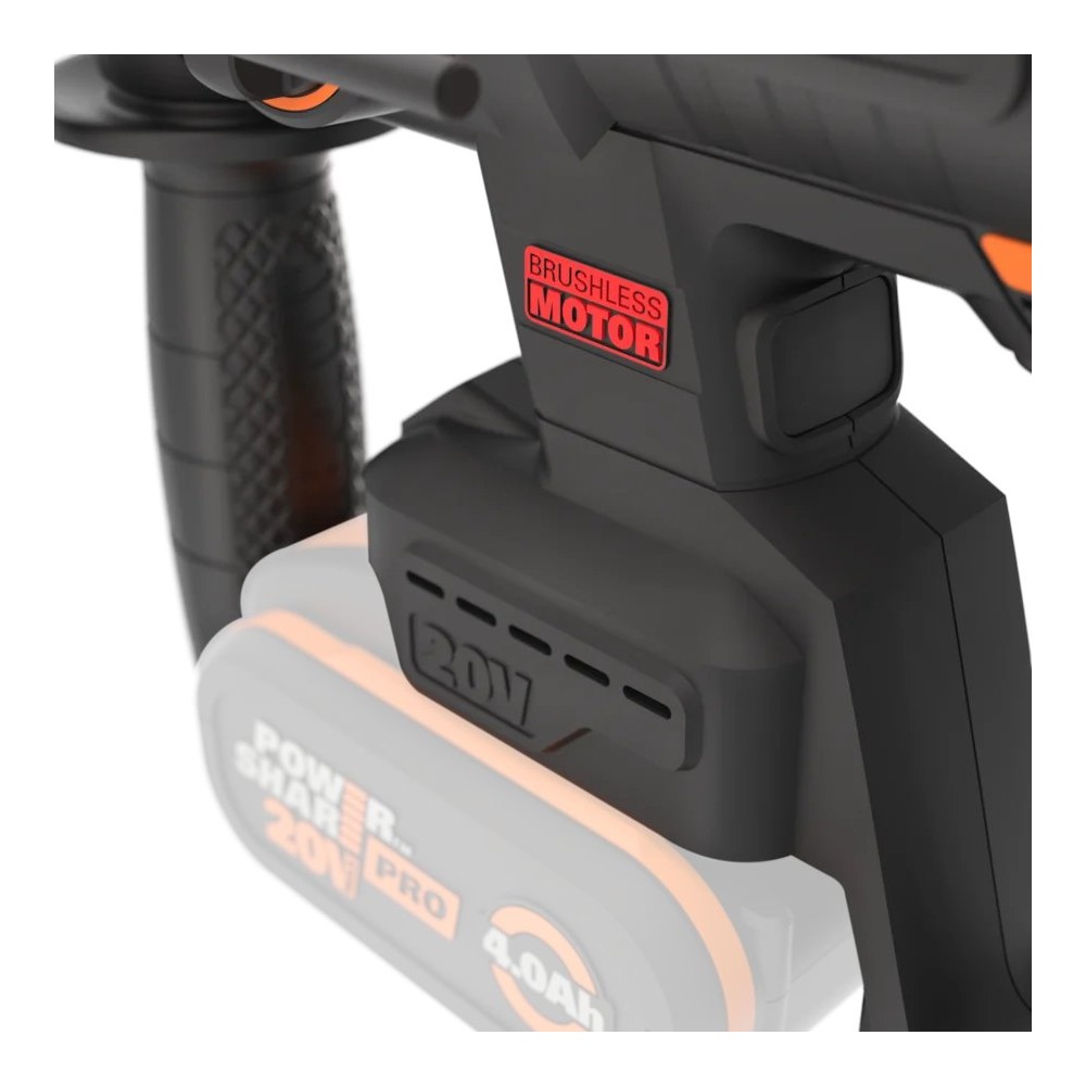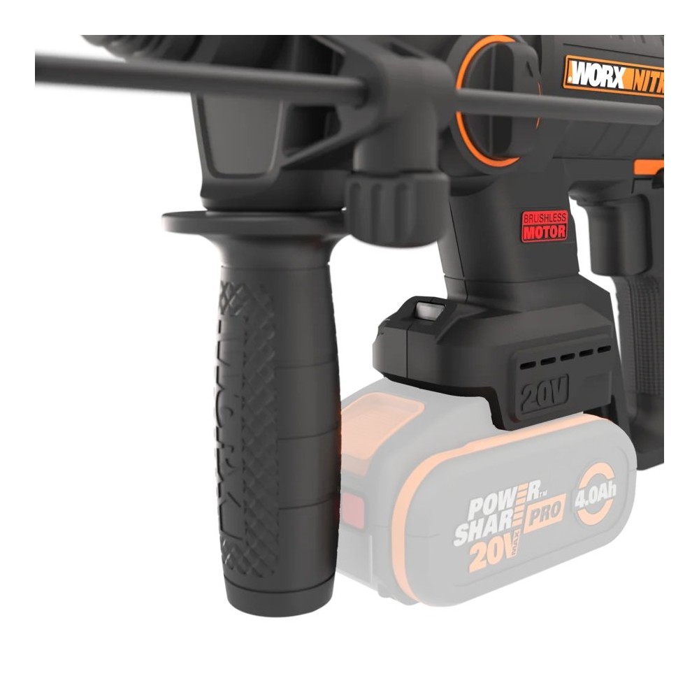 Marteau combiné SDS-PLUS à batterie WORX WX381 - 2J - sans balais - 20V - Sans batteries, chargeur ni Coffret
