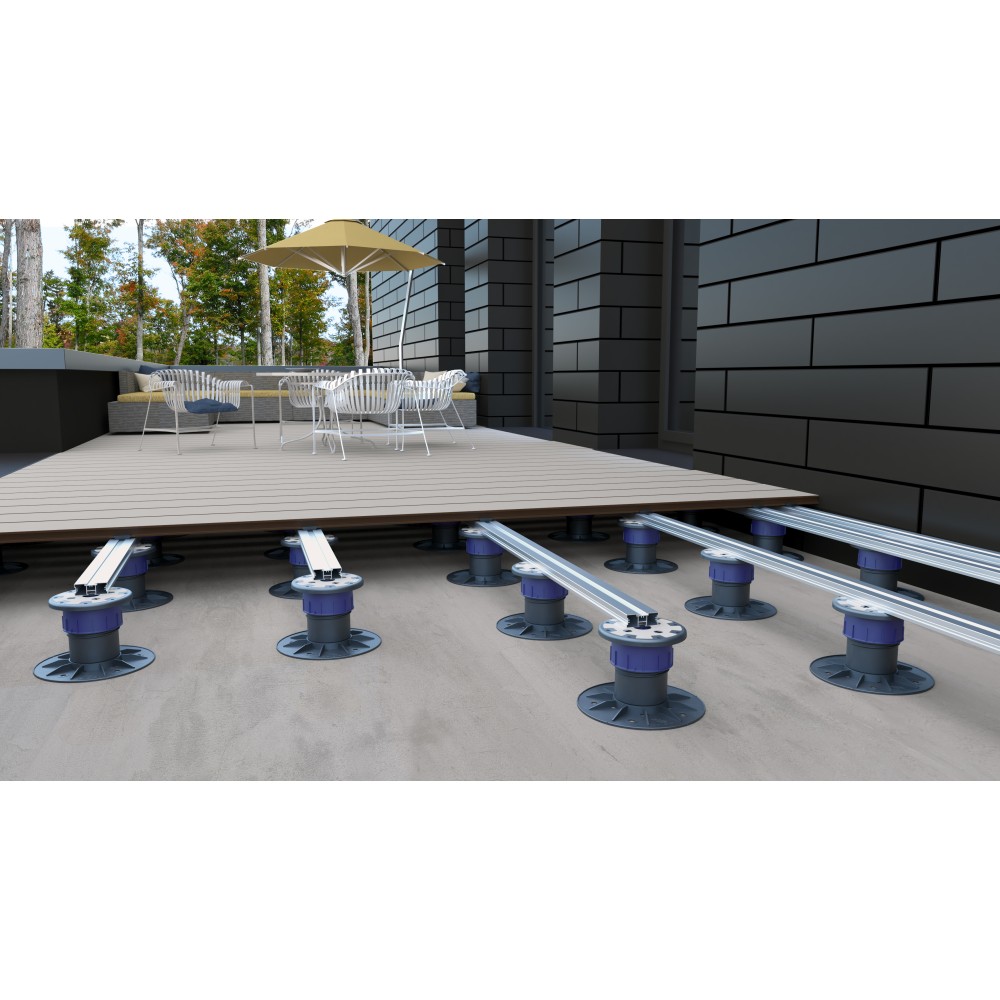 Les plots réglables Peygran XSP (LITE et PRO) sont la solution professionnelle pour les planchers surélevés en extérieur. Ils intègrent une base autonivelante qui maintient le plot à la verticale et accélère le montage, avec une correction jusqu’à 3 % (LITE) ou 5 % (PRO) et un réglage de hauteur manuel (LITE) ou avec Clé XSP et blocage (PRO).