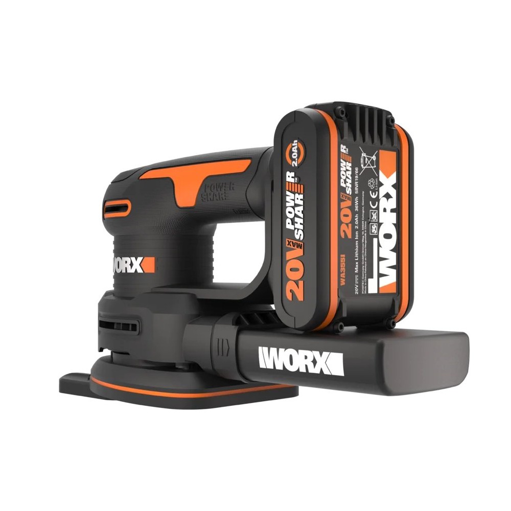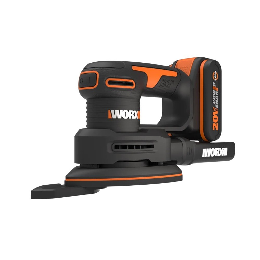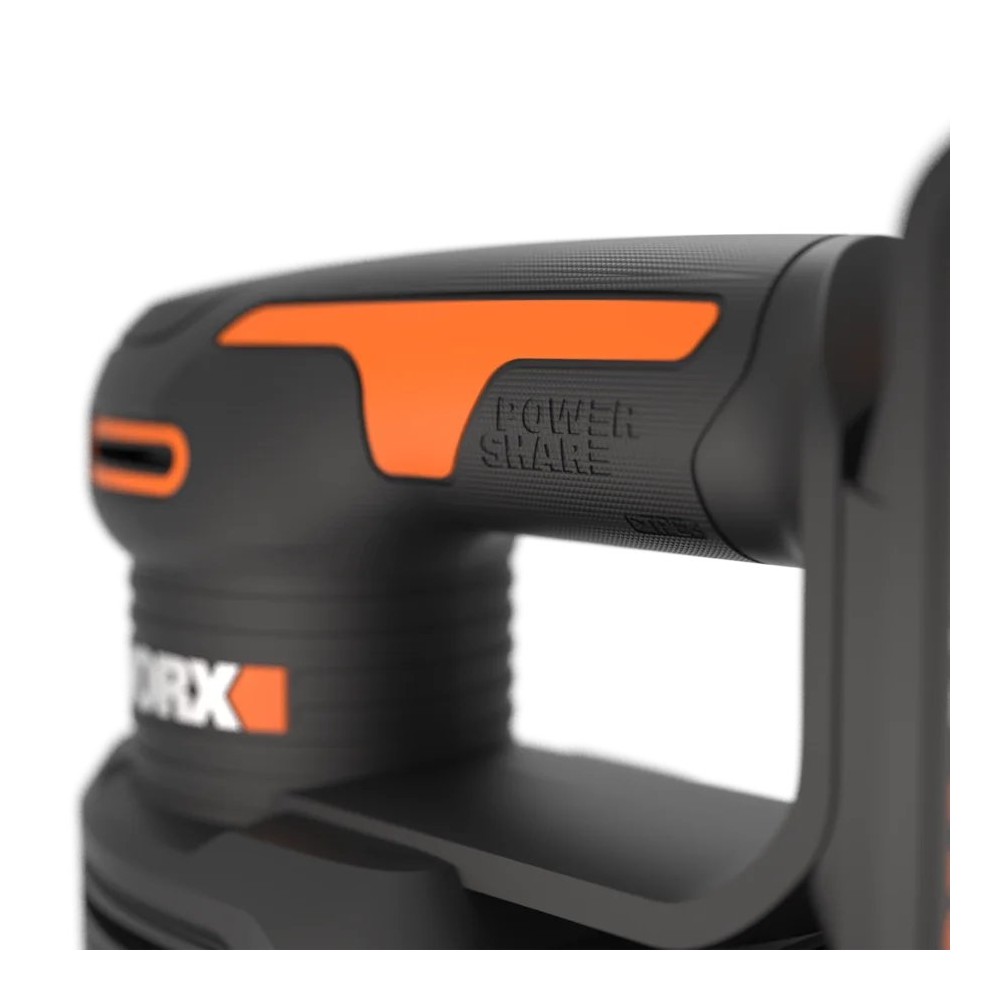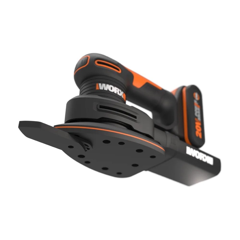 Multilijadora 20V Max. Worx | PowerShare est l'outil idéal pour les travaux de ponçage à la maison ou occasionnellement sur des projets en bois. Avec une excellente ergonomie, il permet une manipulation confortable et sécurisée pendant le travail.