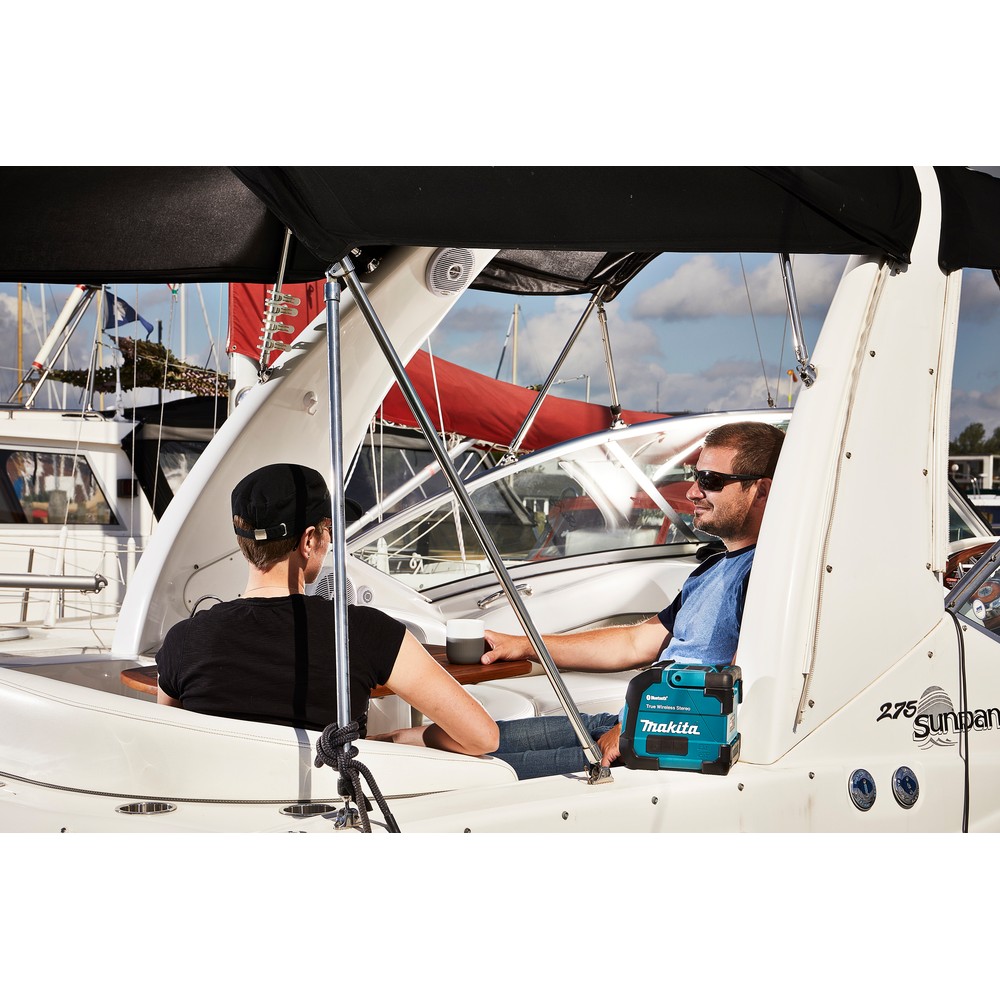 Fonctionnement prolongé : Jusqu'à 35 heures de musique continue avec la batterie BL1860B entièrement chargée.