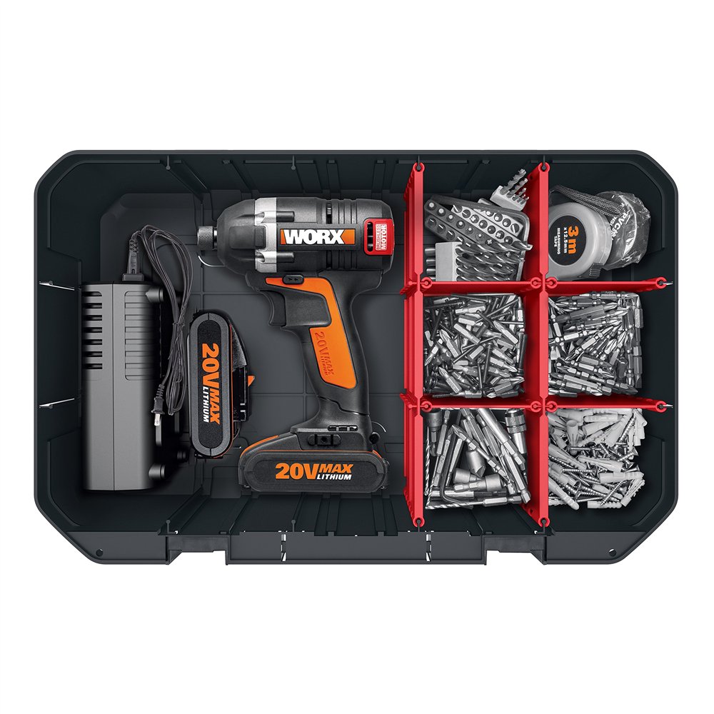 ORGANISEZ ET PROTEGEZ: Le coffret Worx WA0071 est la solution pratique pour garder vos outils organisés, protégés et prêts pour le prochain projet. Son intérieur personnalisable avec des diviseurs permet d'adapter l'espace à chaque outil ou accessoire, évitant ainsi les mouvements et les chocs pendant le transport.