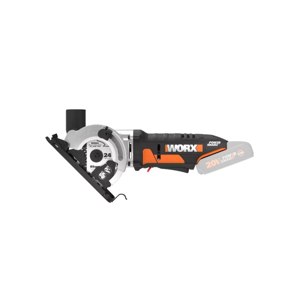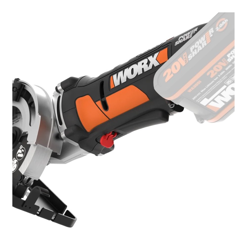 Scie circulaire 85 mm WorxSaw 20V Worx | PowerShare | WX527.9 - Sans batterie, ni chargeur | 2500 rpm, maniement à une main, pro