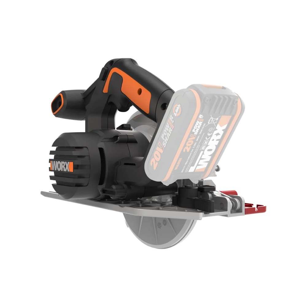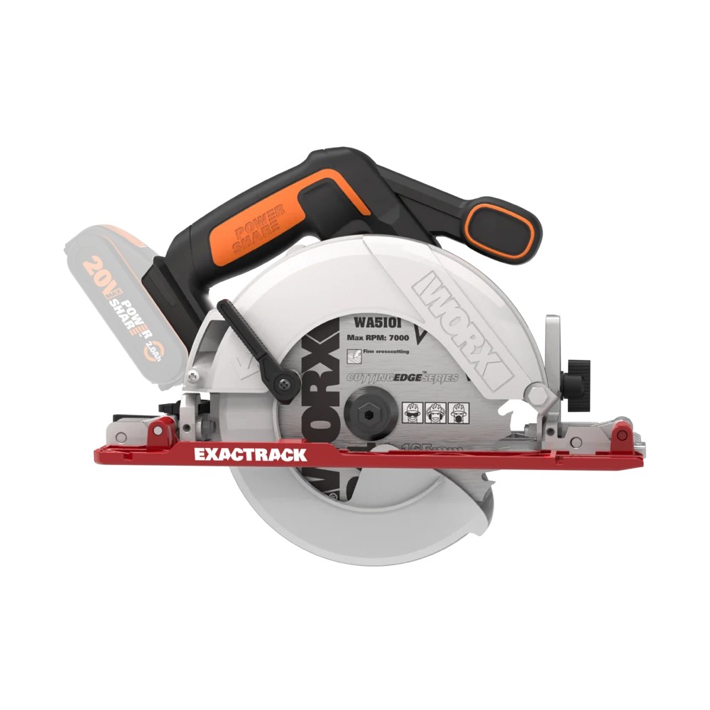 Scie Circulaire sur Batterie 20V Worx PowerShare | WX530.9 | ExacTrack | Lame 165 mm | 4.900 tr/min | Sans Batterie Ni Chargeur