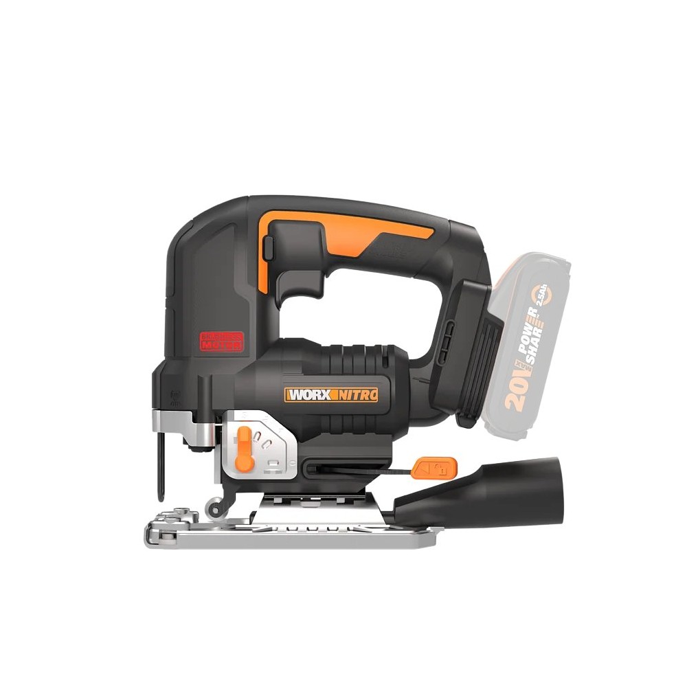 Scie sauteuse 20V Worx | Power Share | WX542.9 Moteur puissant sans balais | 3 positions, pendulation et tube d'aspiration | si