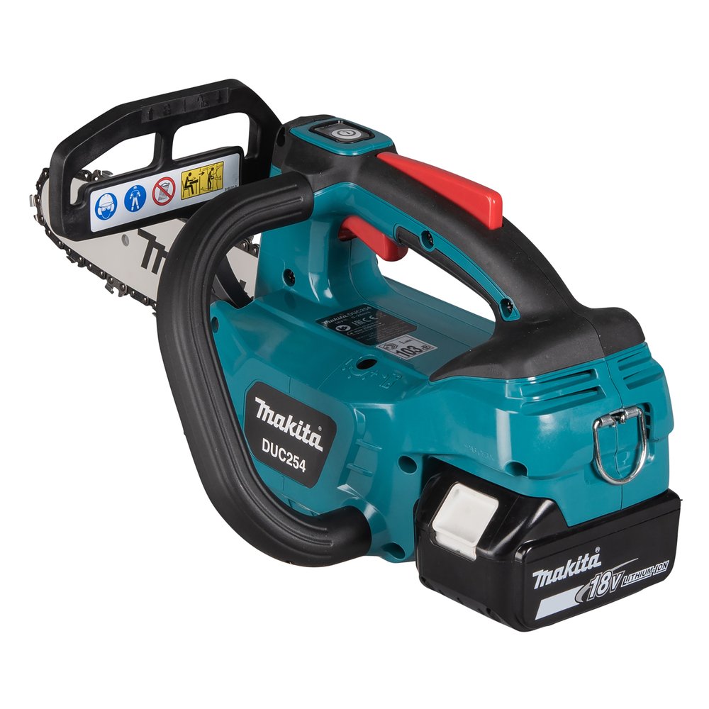 - Tronçonneuse d’élagage Makita DUC254 18 V LXT avec guide de 25 cm.