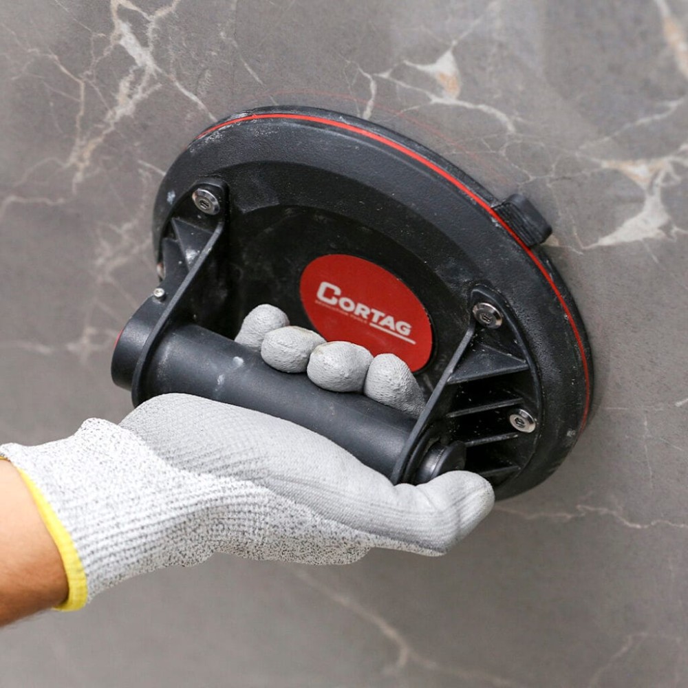 La Ventouse à vide 200 mm Cortag permet de manipuler des plaques et des pièces lourdes en toute sécurité. Fabriquée en aluminium haute résistance et équipée d'un indicateur visuel de vide, elle garantit une prise en main sûre et stable sur porcelaine, céramique, verre et autres matériaux lisses.