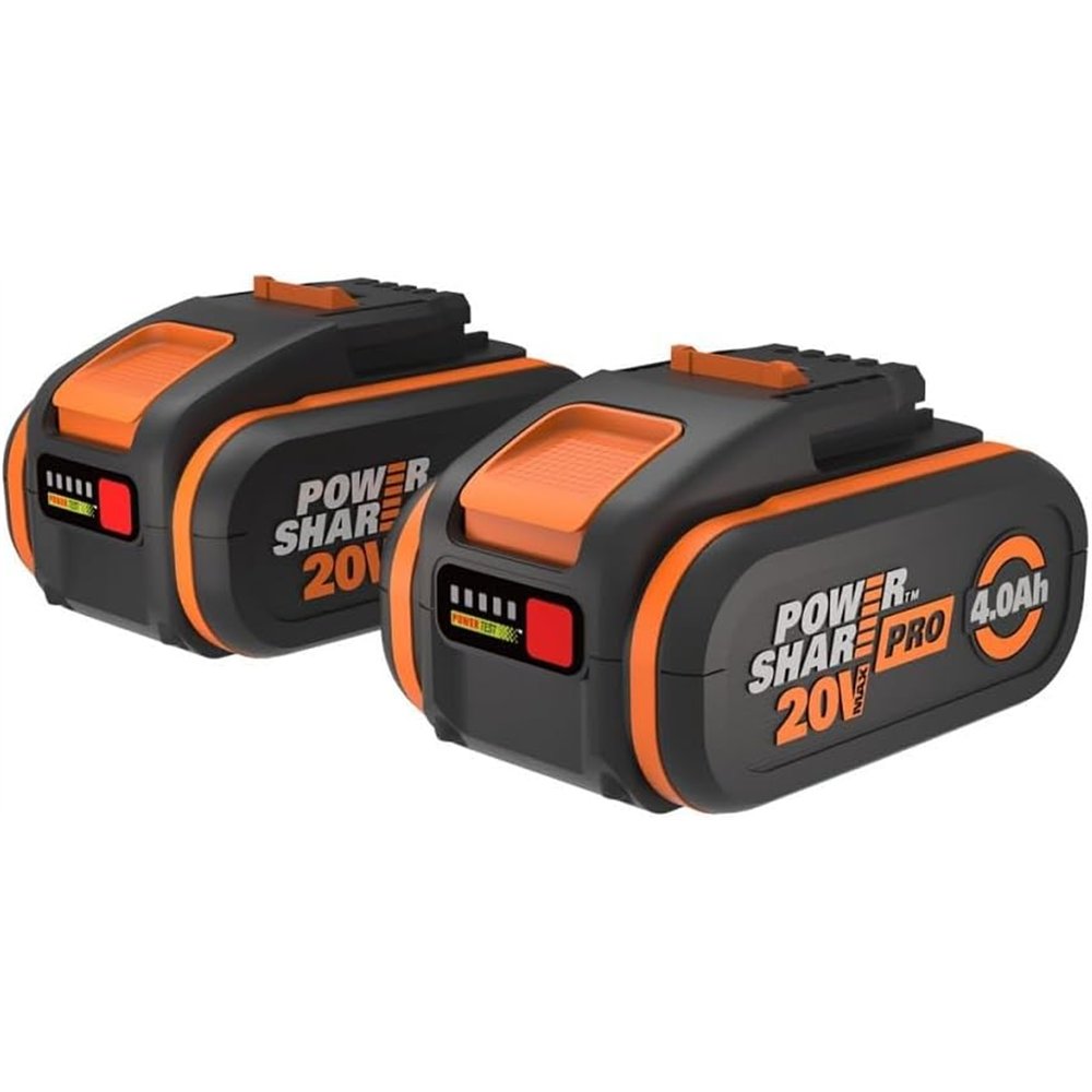 Ce pack comprend deux batteries Worx de 20V-4Ah, garantissant que vous aurez toujours une batterie supplémentaire prête à l'emploi.